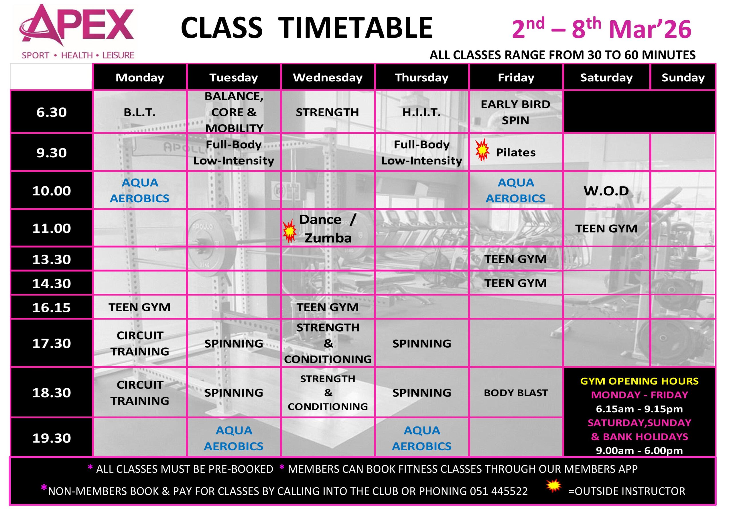 Due to easing of Covid-19 restrictions we have removed both our booking systems in our Gym and Swimming Pool areas. Our members no longer need to book their sessions through our members app nor do our Pay as you Go customers need to book through our main reception.
